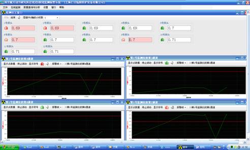 本系統以工業控制計算機作為上位機,通過由 5 芯屏蔽電纜線連接的 RS-485 通訊網絡,來實時采集安裝在現場的若干臺 REN300 在線 x- γ輻射安全報警儀和多個不同量程的 X、γ射線探頭 . 通過對采集數據的加工處理,系統以文本數字、動態圖形曲線、動態圖形符號、動態顏色、報警聲音的方式向管理人員和現場工作人員呈現輻射現場的劑量率信息。同時在保證系統穩定運行的前提下,系統能連續保存 30 個輻射探頭 5 年以上的歷史數據,為輻射環境評價提供重要的數據依據 . 此外系統還提供對歷史的報警數分析報表、平均劑量率分析報表等統計分析功能。本系統是一套成熟的、完善的、實用的系統,已在多個地方安裝并運行。